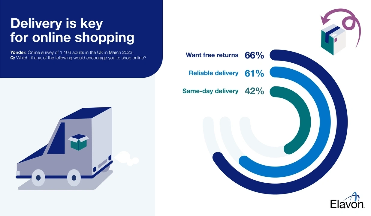 When we questioned more than 1,000 adults across the UK, two thirds (66%) of those who answered said that free returns, labels and packaging would encourage them to shop online. A similar proportion (61%) said reliable delivery was a key reason to encourage online shopping.
