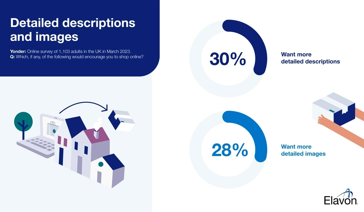Our research also shows the importance of the design and writing on your website. Almost a third (30%) of shoppers said more detailed descriptions would encourage them to shop online, and more than a quarter (28%) say better images would motivate them to shop online.